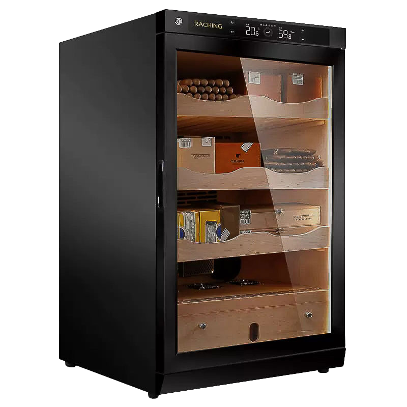 Ο ηλεκτρικός υγραντήρας Raching C150A μπορεί να αποθηκεύσει 600 πούρα. Όλο το εσωτερικό του υγραντήρα είναι κατασκευασμένο από ξύλο ισπανικού κέδρου. Αυτός ο υγραντήρας της σειράς C διαθέτει σταθερή υγρασία και θερμοκρασία για την αποθήκευση και την παλαίωση των πούρων. Η υγρασία μπορεί να ρυθμιστεί μεταξύ 60% και 75% με απόκλιση έως και 5% περίπου. Η θερμοκρασία μπορεί να ρυθμιστεί μεταξύ 16°C και 22°C με απόκλιση 1°C. Ο υγραντήρας είναι εξοπλισμένος με υγραντήρα, σύστημα ψύξης με 3 ανεμιστήρες, θερμαντήρα PTC, αφυγραντήρα και ελεγκτή P. Μέσω της οθόνης, οι ρυθμίσεις μπορούν να αλλάξουν εύκολα και το ερμάριο υγραντήρα θα παρακολουθεί την υγρασία και τη θερμοκρασία. Το φίλτρο μεμβράνης πρέπει να αντικαθίσταται κάθε 3 έως 6 μήνες.